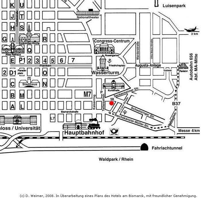 Richtung Mannheim Zentrum; Parken mit Parkschein z.B. bei der